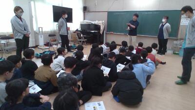将来についての調べ学習の一環で、JR西日本大阪新幹線運転所の方に出前授業に来ていただきました。