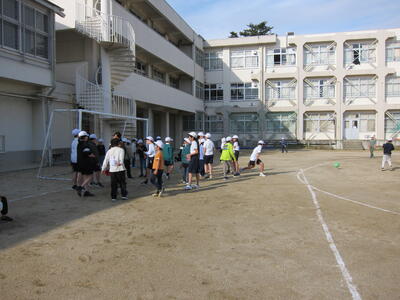 3年生と5年生で給食交流と交流遊びをしました。交流遊びでは、班でどの遊びをするかを考えていました。