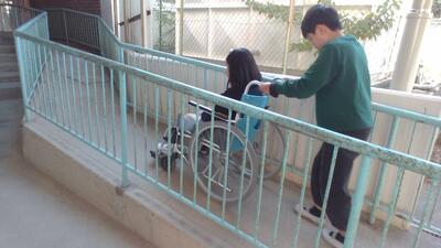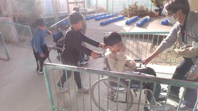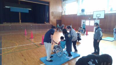 みささぎ会の方に来ていただき、車いす体験をしました。