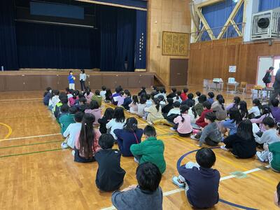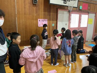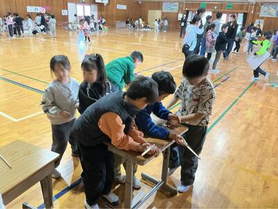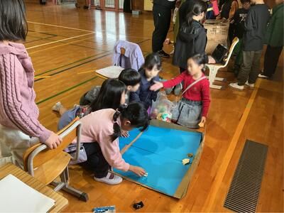 本日の3時間目に体育館で2年生が考えたあそびやおもちゃを体験させてもらいました。