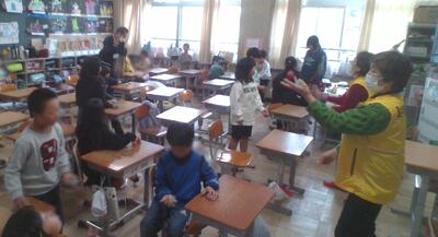 残りは4年生が考えたゲームでどちらのクラスも大盛り上がり。