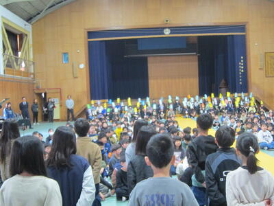 全校暗唱で、できなかった「なまけにんじゃ」を4年生の前で披露しました。